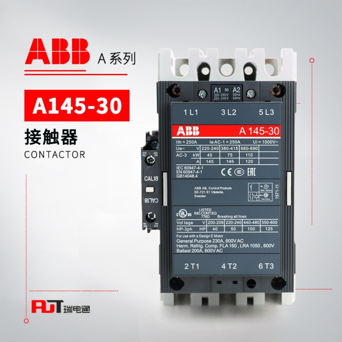 | 极数 | 3P | 额定电流 | 145A | 控制线圈电压 | 220V-230V 50Hz/230-240V 60Hz |
