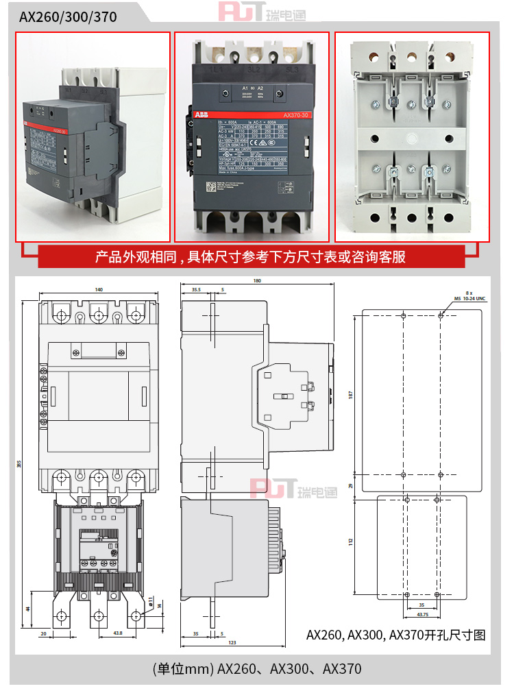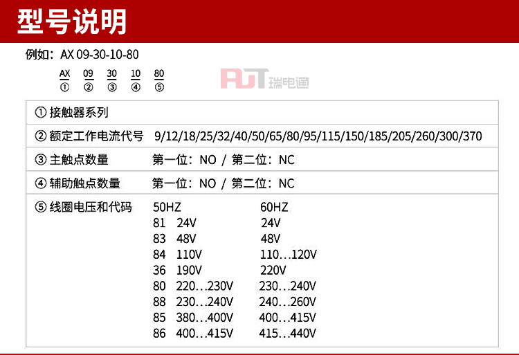 | 辅助触点 | 1NO+1NC | 线圈电源 | AC | 约定发热电流 | 190A |