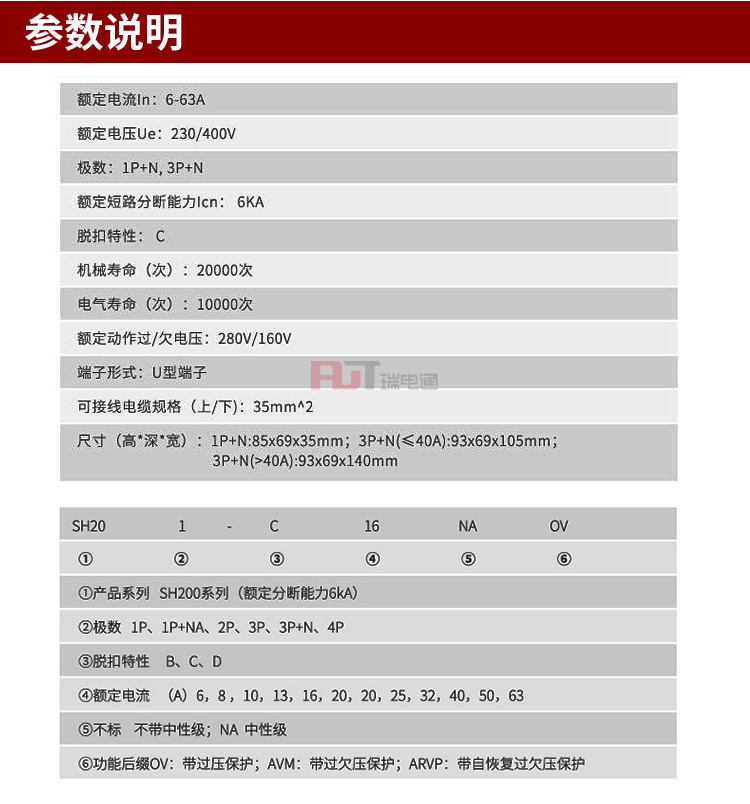 | 分断能力 | 6KA | 脱扣特征 | C | 额定电流 | 63A |