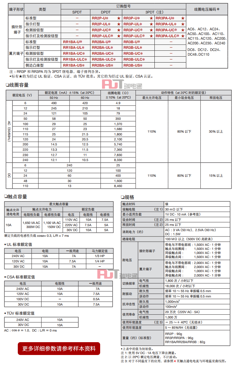 | 端子形状 | 翼片端子 | 线圈额定电压 | AC12V | 类型 | 指示灯型 |